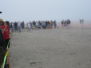 Under all that fog, the beach is really there...not exactly the 90's we were promised, but nobody complained